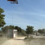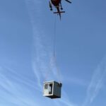 Con el fin de actuar ante cualquier situación de emergencia, los bomberos de la Comunidad de Madrid, nos han solicitado instalar el módulo en la zona mejor indicada para ello. Como se puede comprobar en las fotos, la entrega tuvo que realizarse de una forma especial, ya que necesitamos la ayuda de un helicóptero para instalarlo en su ubicación final.