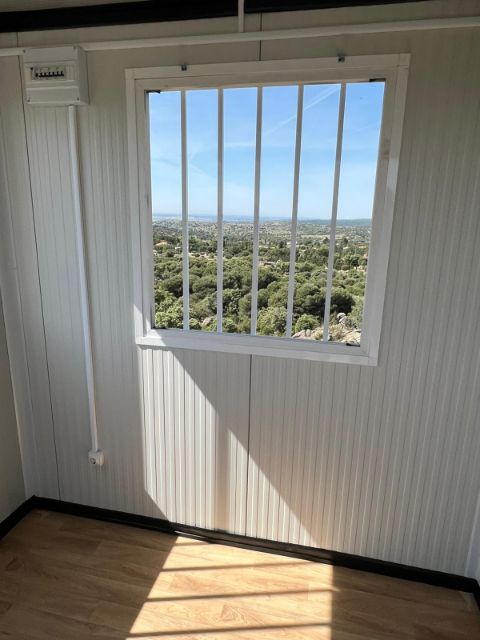 Hemos entregado un módulo de vigilancia de 4 x 2,40 metros, junto con el mobiliario solicitado (mesa, sillas, extintor, etc…) en Matamora. Galapagar. Madrid.