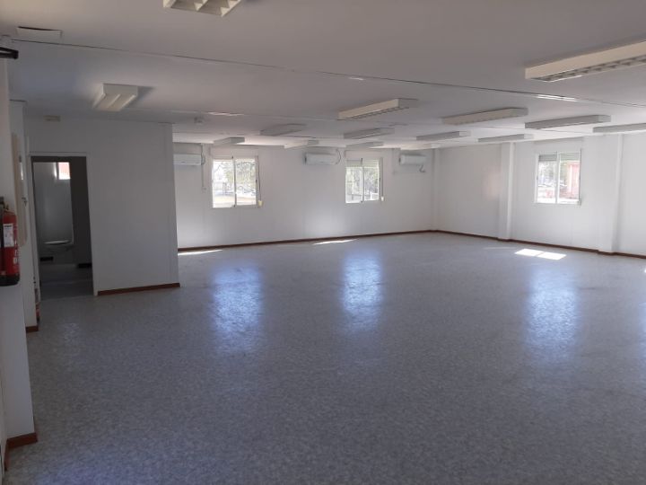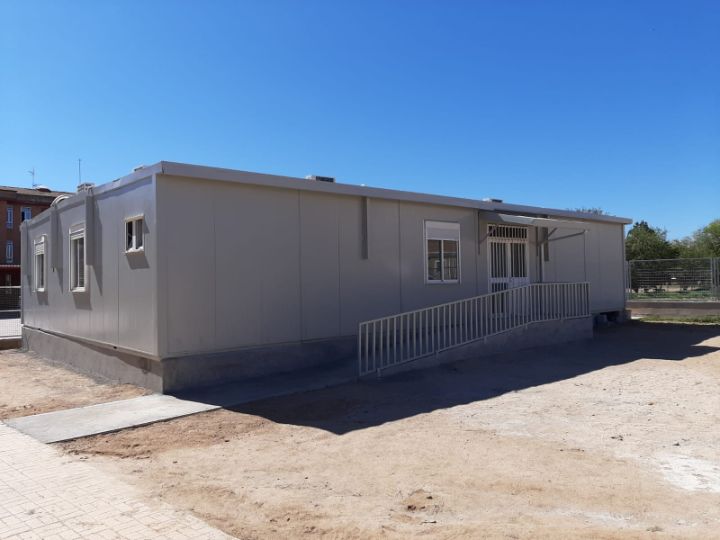 El conjunto modular consta de 6 módulos de 11 x 2.60 mts teniendo una superficie total de 180m2 aproximadamente. Pudiendo tener un comedor con unas medidas excepcionales, además de aseos y cocina dentro del propio proyecto modular. El edificio posee rampa de acceso para minusválidos para una entrada con mayor facilidad.