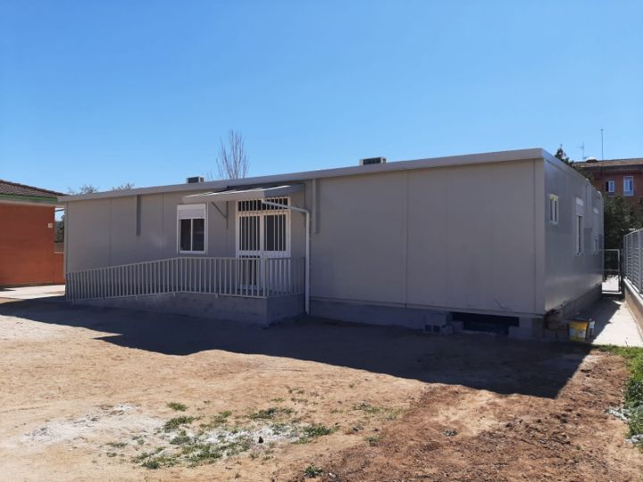 En este nuevo proyecto modular para el colegio Maestra Placida Herranz, situado en Azuqueca de Henares, se ha trasladado, transformado y adaptado el conjunto modular prefabricado para realizar, como obra, un comedor en el colegio.