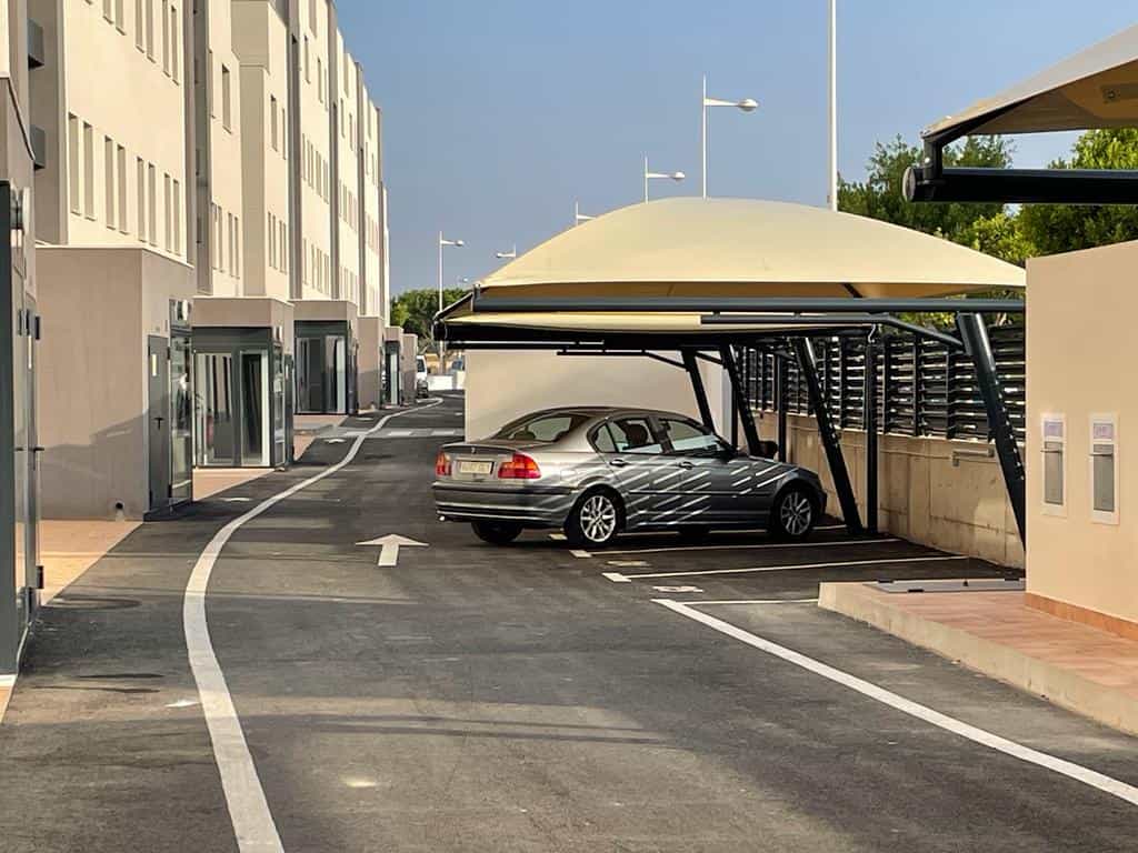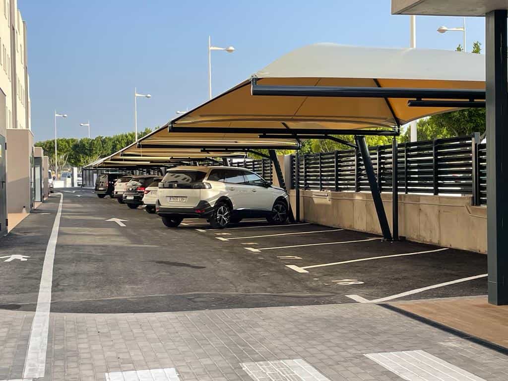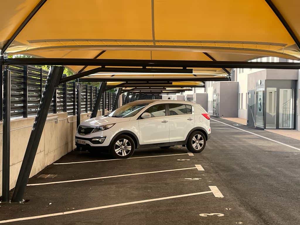 Esta solución original ha sido elegida por quienes buscan una alternativa innovadora a las marquesinas tradicionales de estacionamiento, brindando una protección solar y cobertura excepcionales a los vehículos estacionados.
