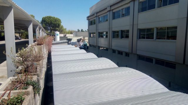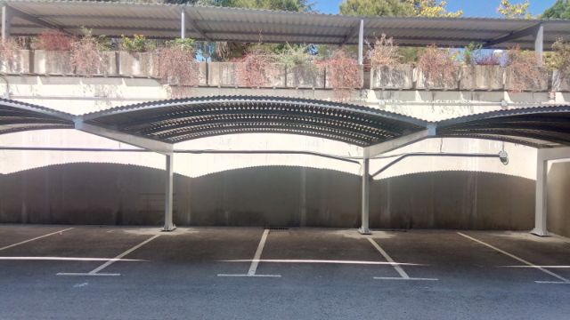 La instalación consta de cubiertas de 16 plazas sencillas instaladas en un solo bloque o grupo. Las medidas por cada plaza son de 5 metros x 2,50 metros.