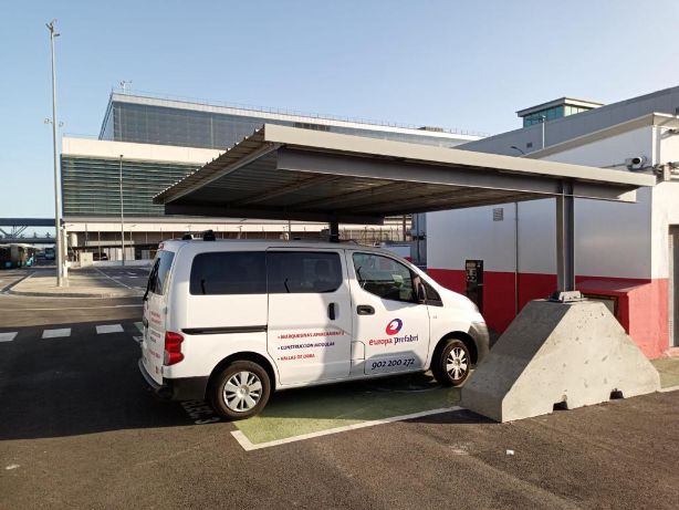 - El diseño, transporte y montaje de marquesinas de parking para el Aeropuerto de Madrid Barajas de 1.300 plazas.