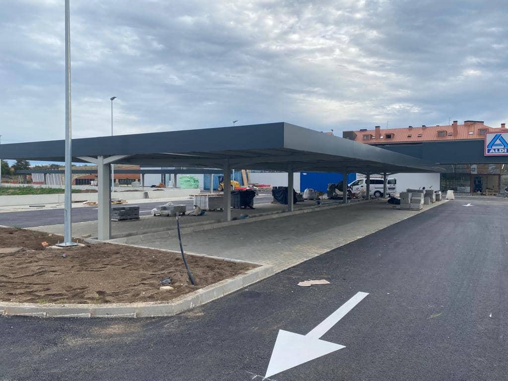 Supermercado Aldi ha contado con el Grupo Europa Prefabri para realización de los trabajos de fabricación e instalación de un nuevo proyecto de marquesinas de aparcamiento, en la ciudad de Gijón.