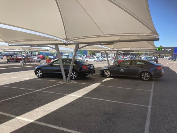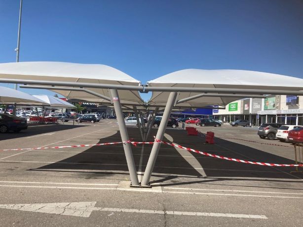 MARQUESINAS TEXTILES PARA PARKING INSTALADAS EN CENTRO COMERCIAL DE TOLEDO