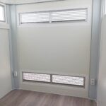Revestimiento interior: paneles de HPL color blanco (ref. f.2001) o material similar de 4 mm. Proporcionan un ambiente luminoso, limpio y moderno, con un mantenimiento mínimo y una gran durabilidad.