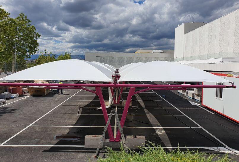 Europa Prefabri ha terminado el montaje de la cubierta modelo textil en el aparcamiento del Laboratorio Merck ubicado en Tres Cantos, Madrid para la empresa Banasa Construcciones.