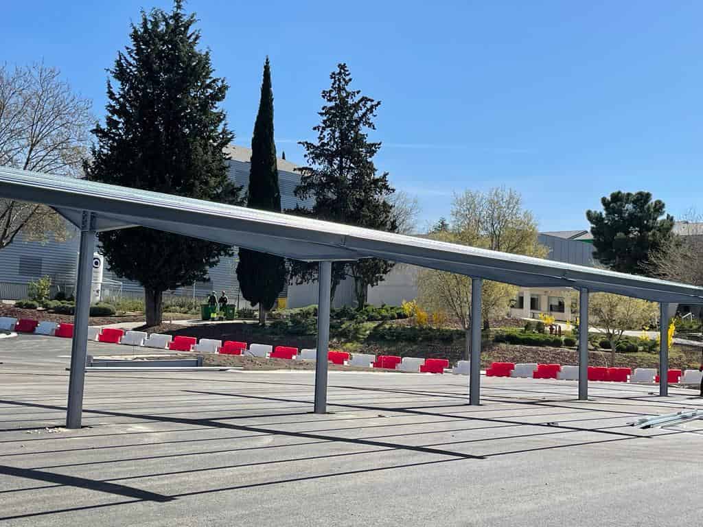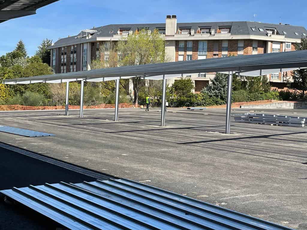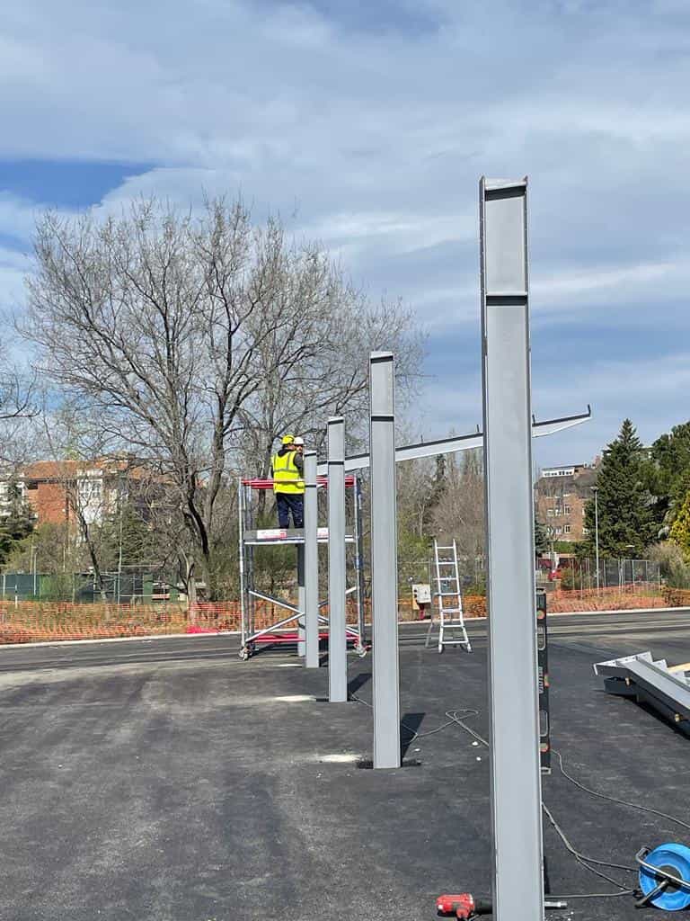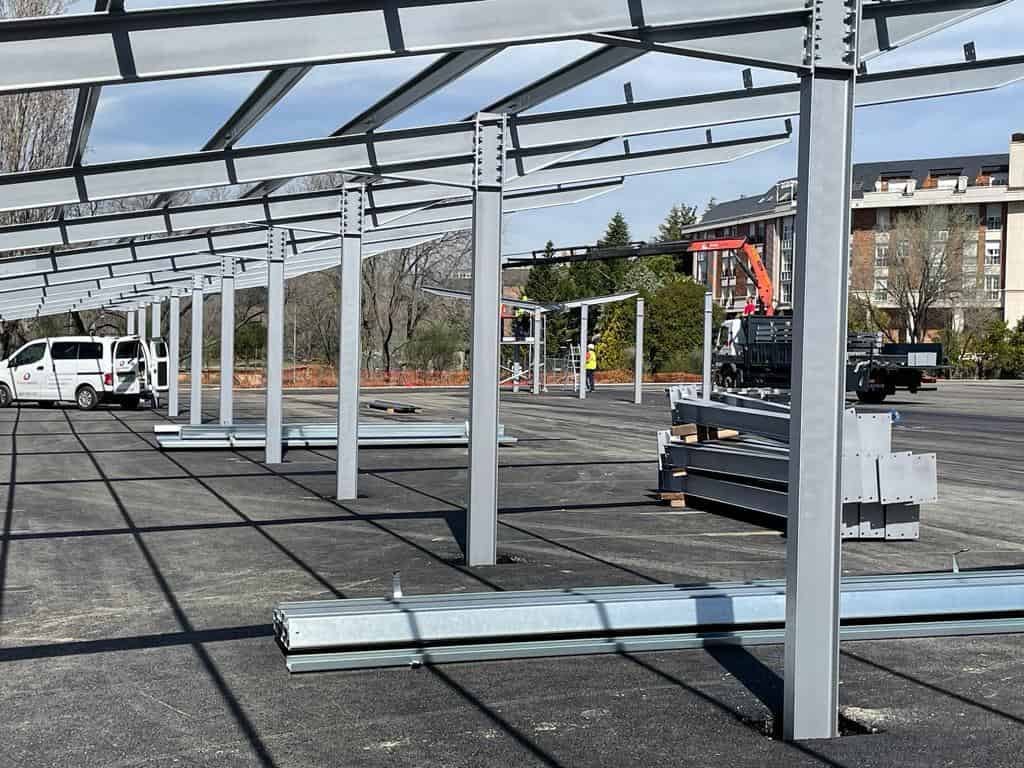 El Grupo Europa Prefabri ha comenzado el montaje de una marquesina solar en la Universidad Carlos III de Madrid, situada en Mahadahonda.
