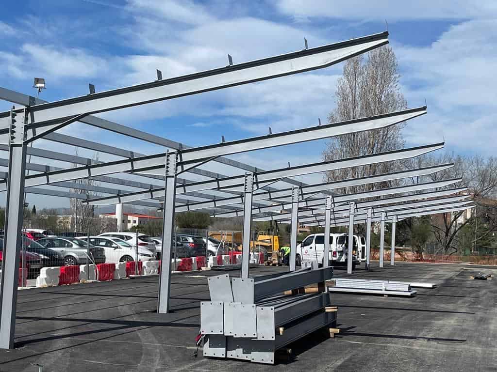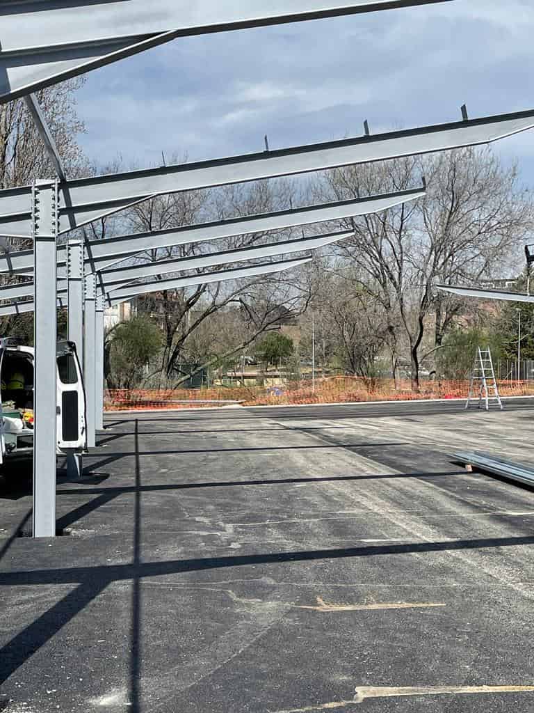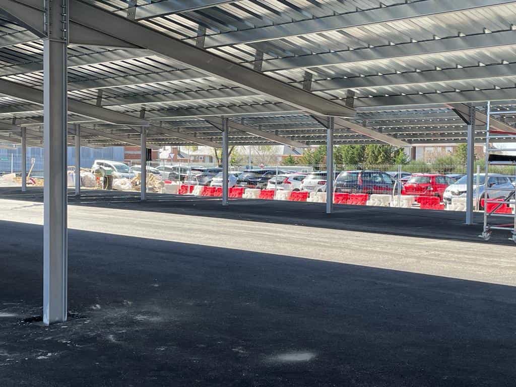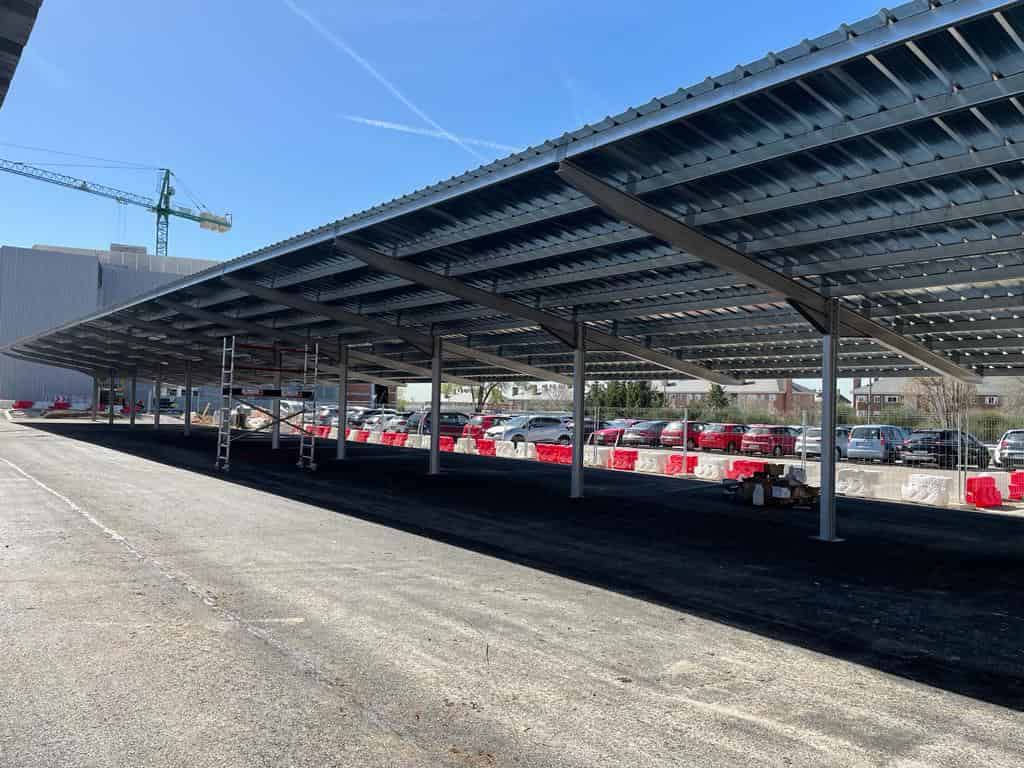 El Grupo Europa Prefabri ha comenzado el montaje de una marquesina solar en la Universidad Carlos III de Madrid, situada en Mahadahonda.
