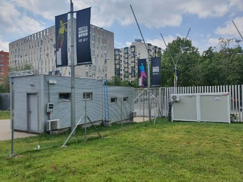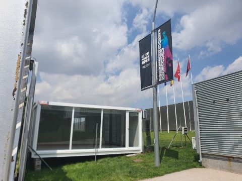Se han suministrado e instalado los módulos de venta de taquillas, módulos de tipo kiosco, pintados en el color corporativo del evento, módulos diáfanos para la televisión, conjunto modular acristalado y cabina de vigilancia.