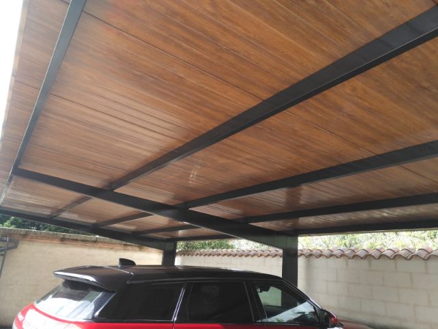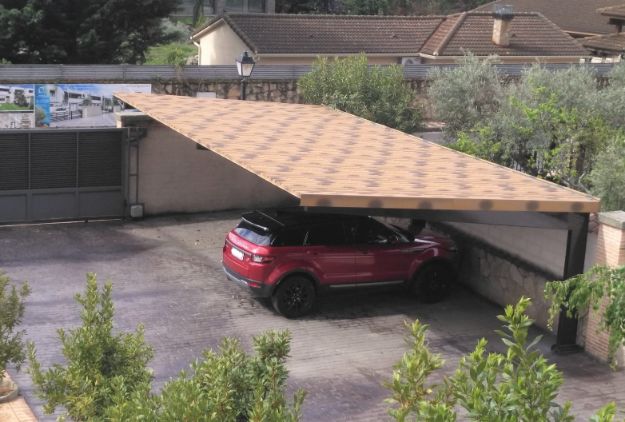 El proyecto consta de suministro y montaje de 4 plazas de aparcamiento sencillas tipo A, con ménsulas pintadas Ral-9004, cubierta panel sandwich imitación teja en la parte superior, y en la parte inferior imitación madera.