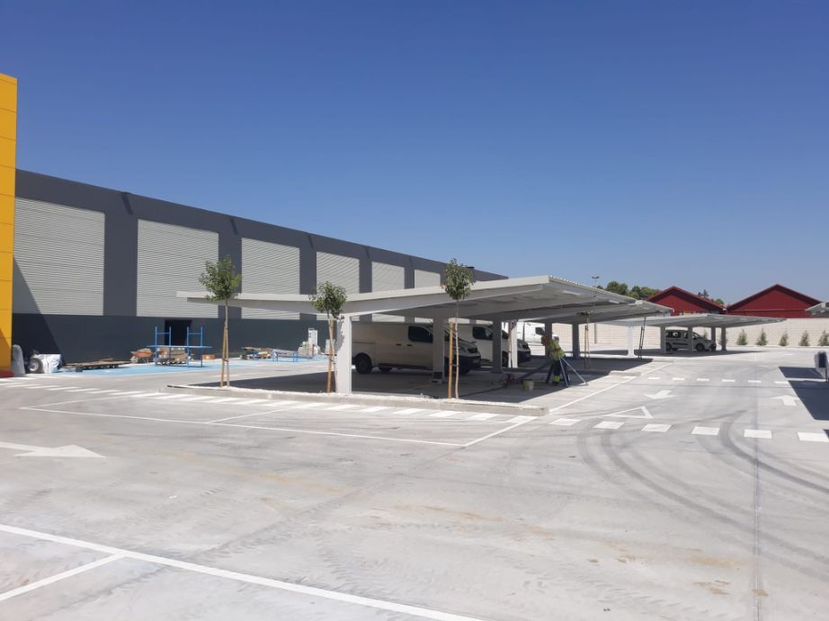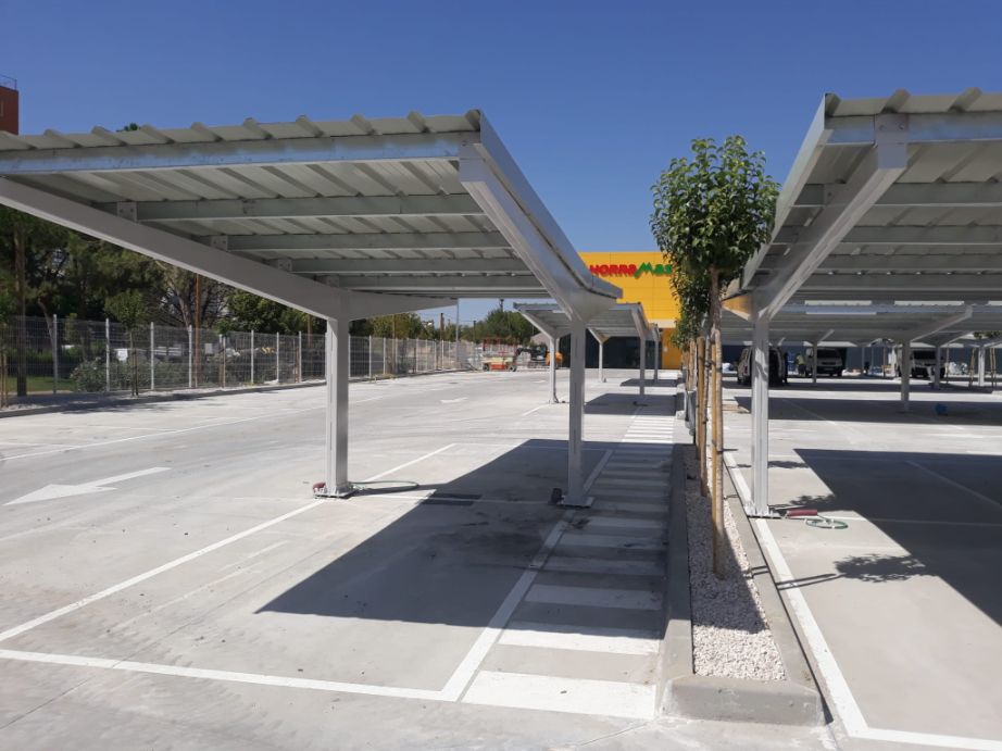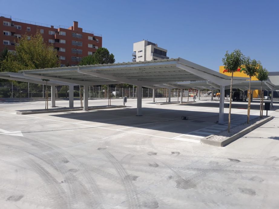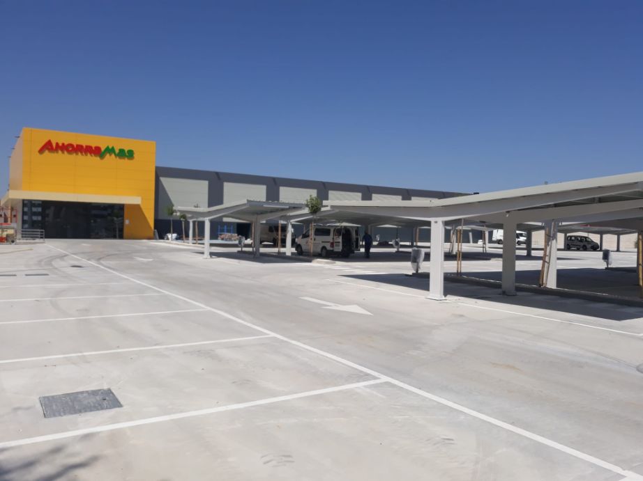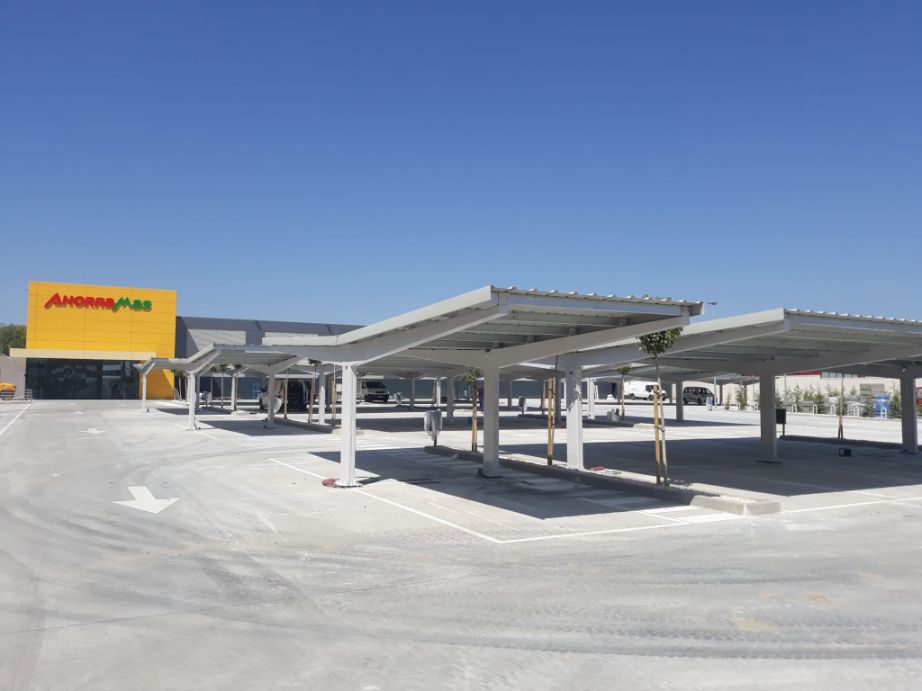 Europa Prefabri ha terminado la instalación de las marquesinas de aparcamiento para el Ahorramás de Villaverde, en Madrid.