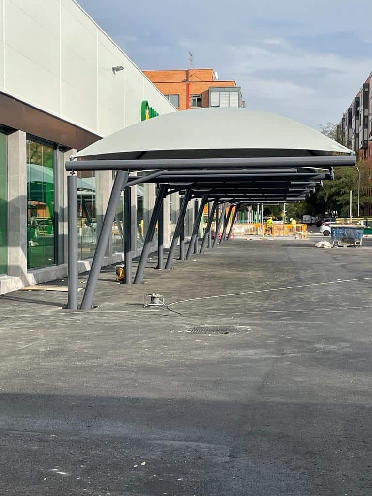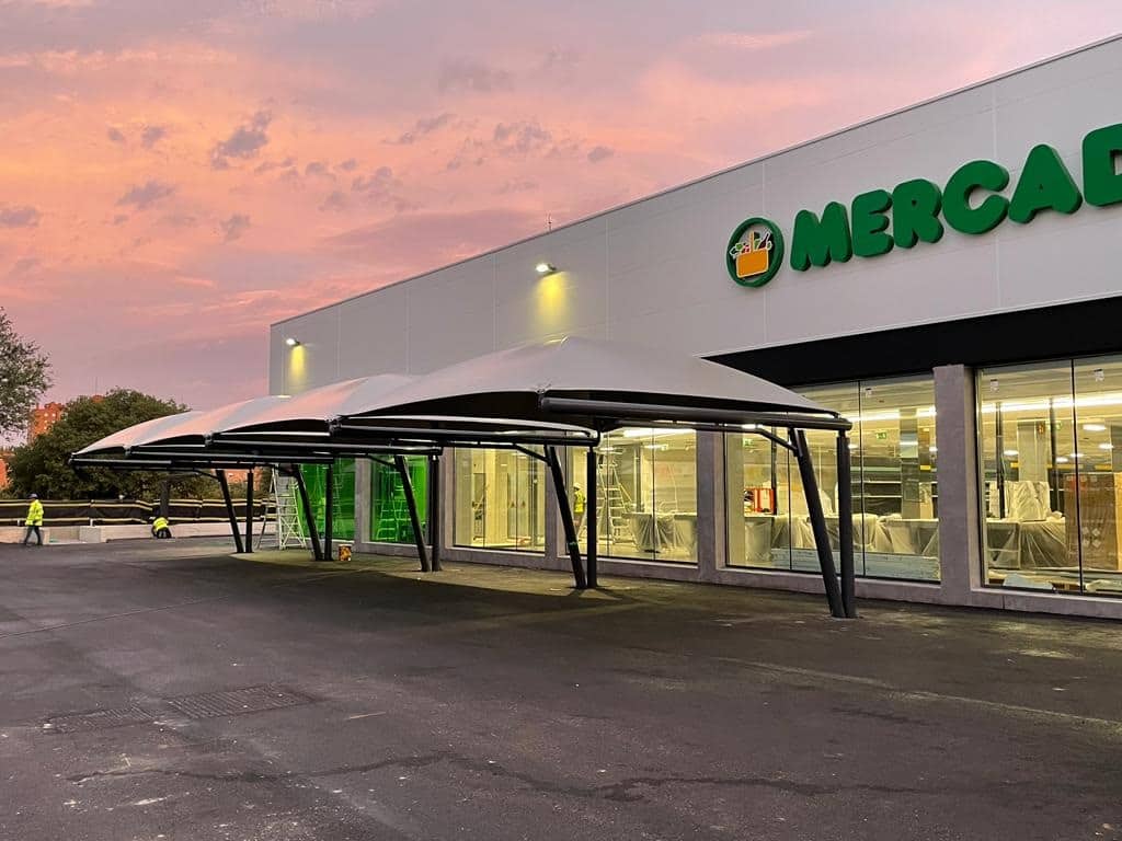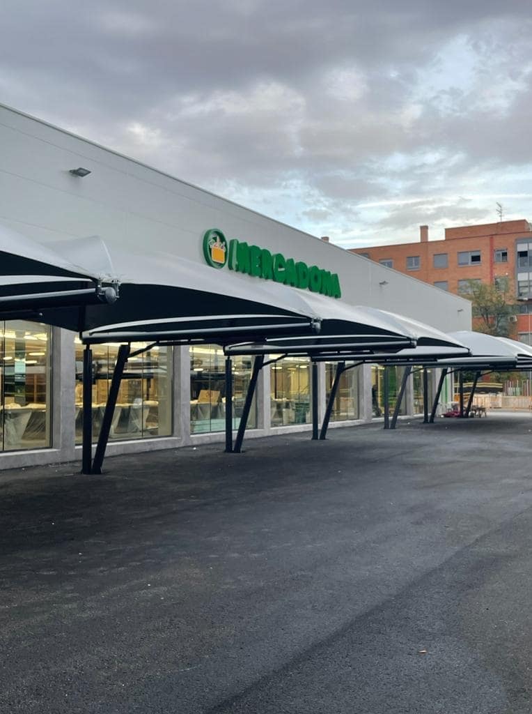 Una vez más Mercadona vuelve a confiar en el GRUPO EUROPA PREFABRI para los trabajos de fabricación, suministro e instalación de las Marquesinas de Aparcamiento para el Supermercado de Valdebernardo, en Madrid.