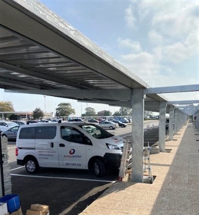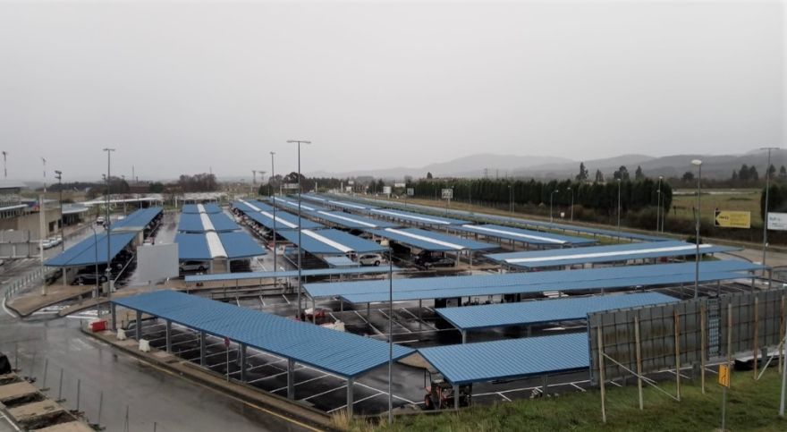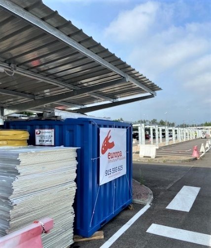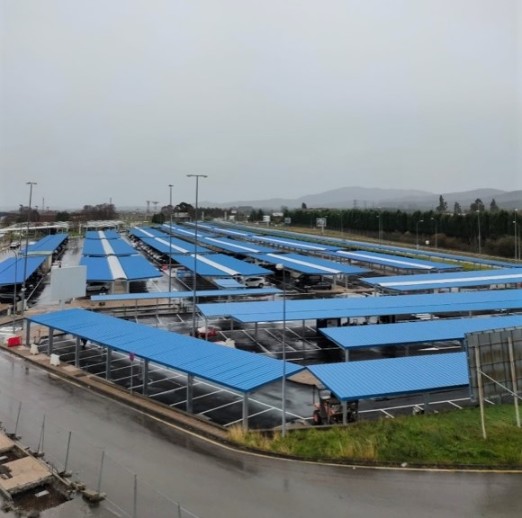 El diseño, transporte y montaje de marquesinas de parking para el Aeropuerto de Madrid Barajas de 1.300 plazas.