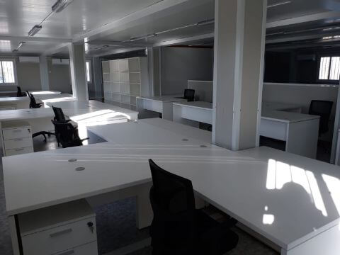 - Cuarenta y una (41) Mesas de escritorio, melamina de 1,60 x 80 cm. con ala de 100 cm. Acabado en blanco. Color para elegir.