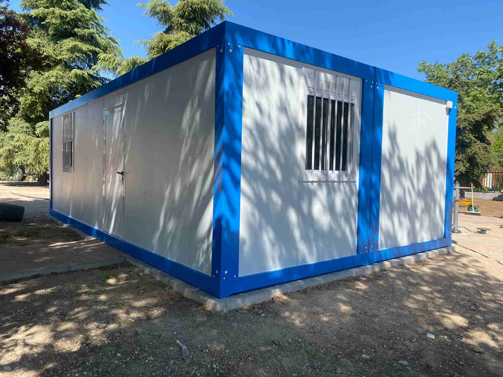 Para este proyecto se utilizó un conjunto modular compuesto por dos módulos prefabricados adosados por la cara larga, con una medida total de 8 x 2, 4 metros.