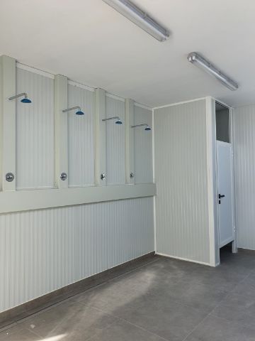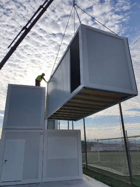 Europa Prefabri ha diseñado, fabricado e instalado unos módulos para vestuarios ubicados dentro de las instalaciones de un campo de fútbol en Barcelona. Las calidades de esta construcción modular prefabricada son superiores a la mayoría de construcciones tradicionales, optimizando así la comodidad y funcionalidad de estos vestuarios modulares polivalentes.