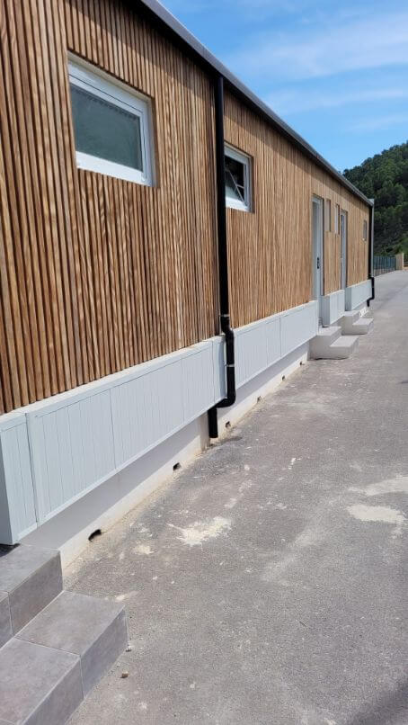 - Todo el conjunto modular está equipado con instalación de fontanería y saneamiento completa, con materiales y elementos de primeras calidades.